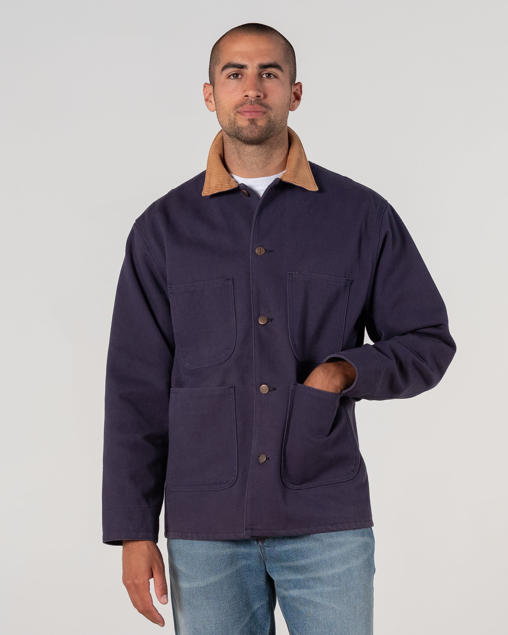 Look, it's a chore coat, but it's the best chore coat you're going to find. Made in USA from 100% cotton canvas and washed to help speed up the break in period. Completed with a quilted nylon wool insulation, contrasting corduroy collar, and classic EOT custom brass buttons.