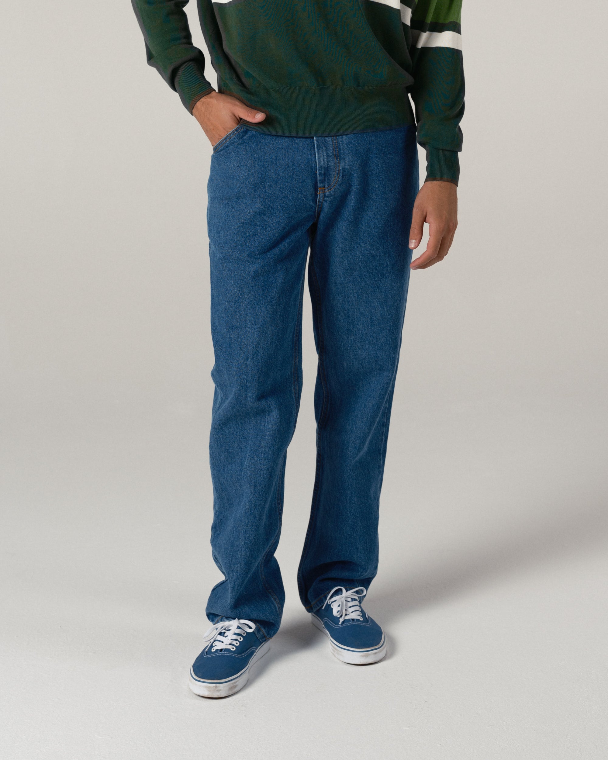 These are our perfect jeans. A classic fit, easy to wear, everyday pair of denim. Starting with a USA milled 14.5oz denim fabric, then constructed and washed to achieve a look that will just get better with age. These have the same fit as our Four Pocket Pants, featuring slanted front and large back pockets, straight leg fit, a mid rise, and custom EOT hardware. We aren't here to reinvent the wheel or remake a relic from the past. All we aimed to do was make a great pair of jeans that you'll love today and twenty years from now.