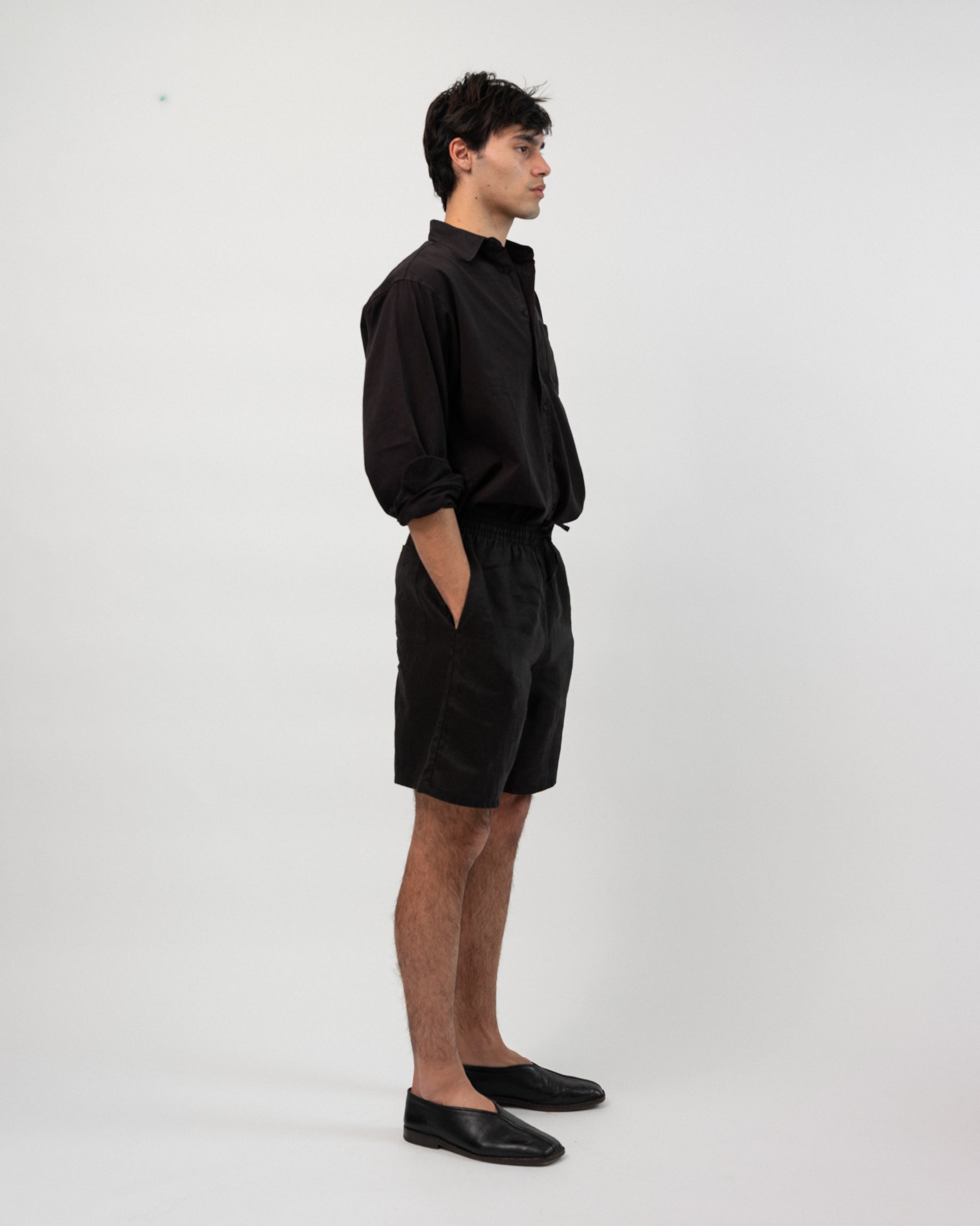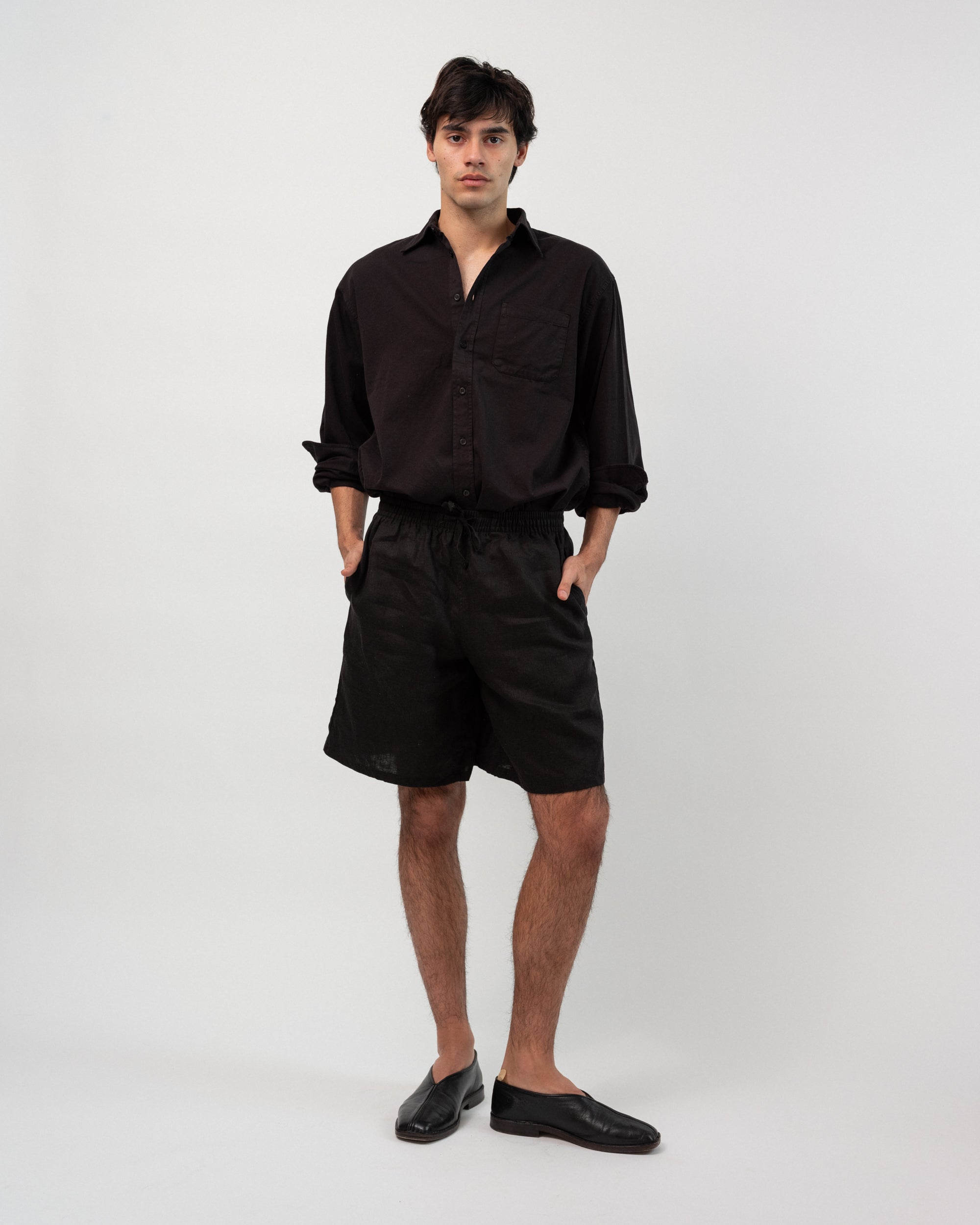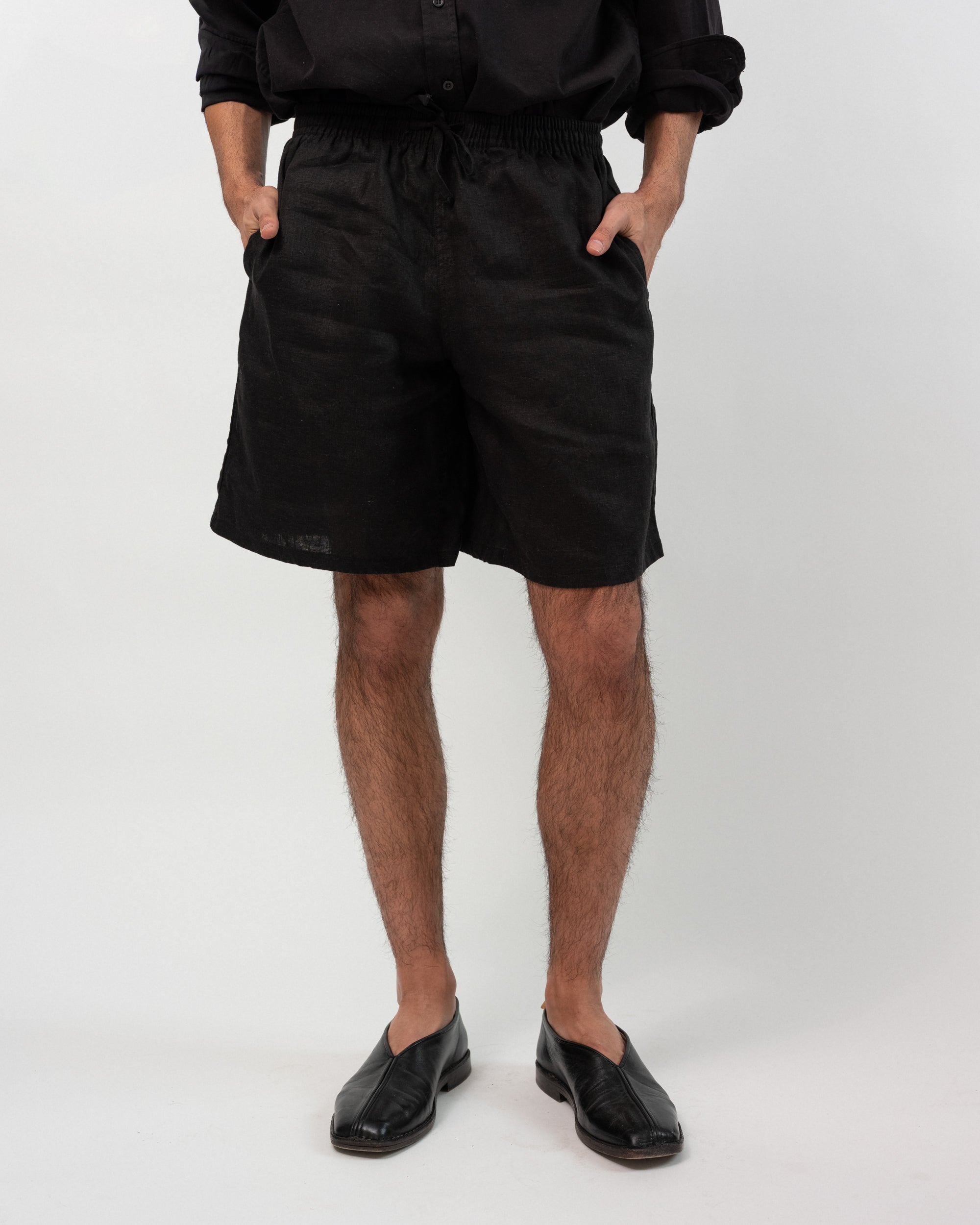 Crafted from a mid-weight 100% linen fabric and cut in a wide comfortable fit. Featuring front pockets and a drawstring waistband. Due to the nature of linen, we suggest wash cold and hang dry to avoid shrinking.